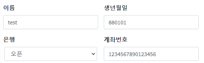 - 이름 / 생년월일 / 은행 / 계좌번호 등이 label 태그