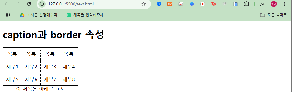 - <caption> 태그에 표시된 요소의 위치를 옮길 수 있음