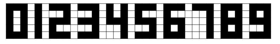 5. 0부터 9는 아래와 같이 나타난다. 역시 "#"을 검은색, "."을 흰색으로 표시했다.