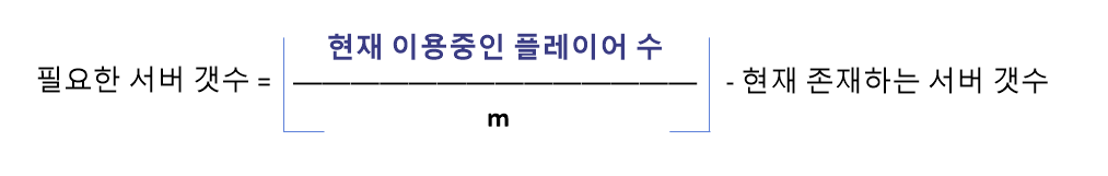 - n * m <= x < (n + 1) * m 을 만족하지 못할때, 필요한 추가 서버 갯수는 다음 공식을 따른다.