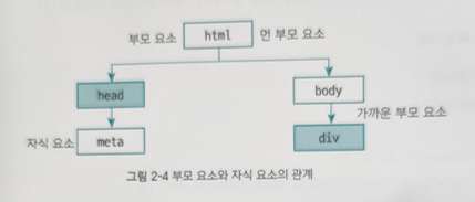 - 요소 기준으로 자신의 아래에 있으면 자식 요소, 위에 있으면 부모 요소라고 함