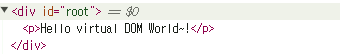 - div id = 'root' 태그에서 가상 DOM이 메서드에 의해 물리 DOM으로 변경