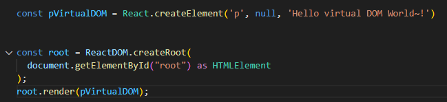 - root.render 메서드는 변환한 가상 DOM을 부착할 물리 DOM 객체가 필요함