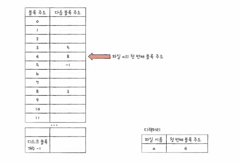- 각 블록에 포함된 다음 블록 주소들을 한데 모아 테이블 형태로 관리