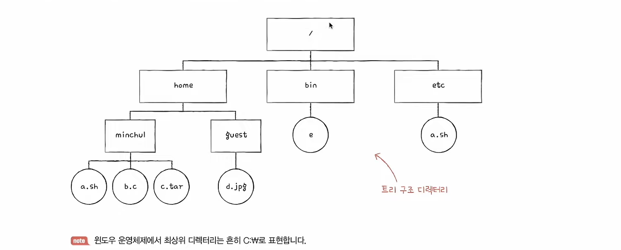 - 파일이 내부에 해당 파일과 관련한 정보를 담고 있다면, 디렉터리는 내부에 해당 디렉터리에 담겨있는 파일 등 대상과 관련된 정보를 담고 있음!