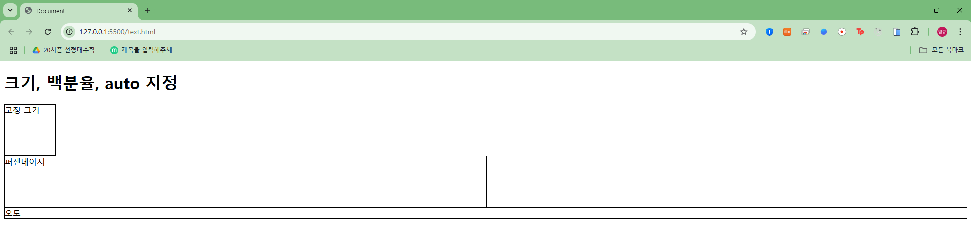 <h1>크기, 백분율, auto 지정</h1>